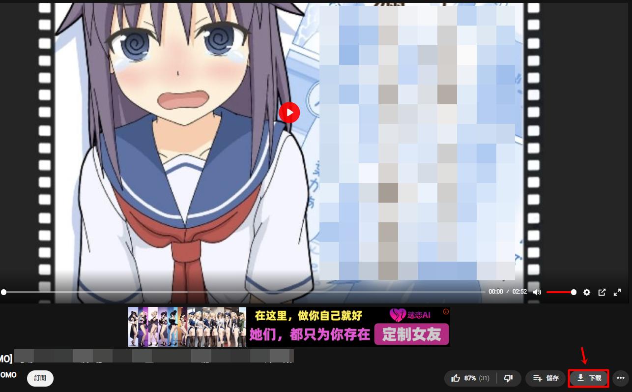 開啟 Hanime 影音網站,找到你想收藏的影片,點選右下方的「下載」按鈕。