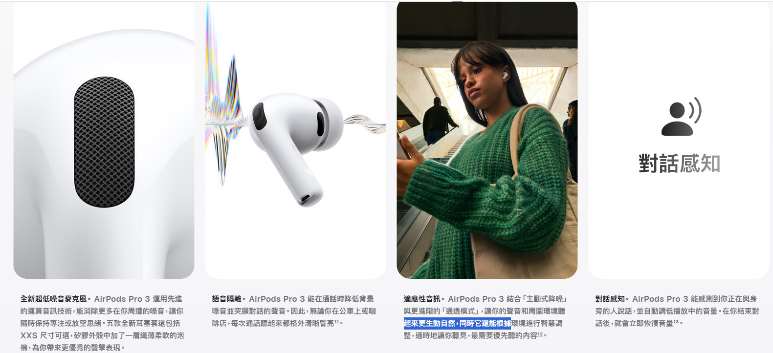 主動式 | O | O 主動降噪效果比 首代 AirPods Pro、AirPods 4 提升最高達 2 倍 |