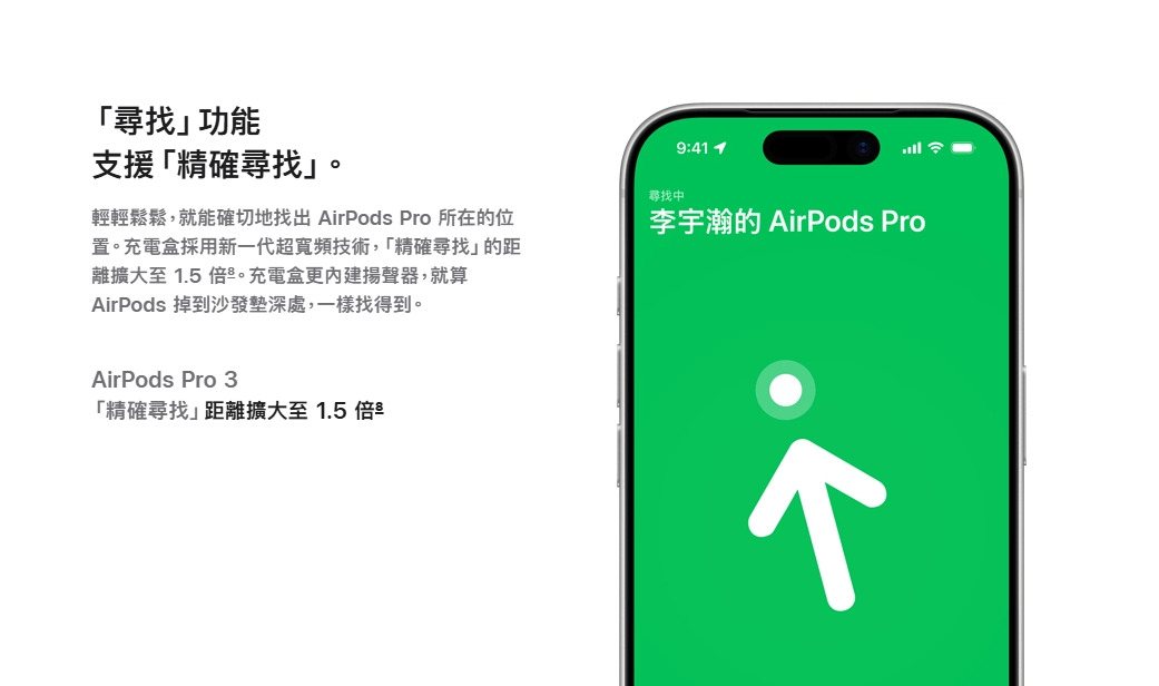 至於新款AirPods Pro 3代 續航力,啟用主動降躁時,單耳可連續使用 8 小時,搭配充電盒最長可達 24 小時。若臨時需要使用,快速充電 5 分鐘即可提供 1 小時聆聽,外出也能隨時補足電力。而,AirPods Pro 3充電盒採用新一代超寬頻技術,「精確尋找」的距離擴大至 1.5 倍,充電盒內建揚聲器,就算耳機掉到沙發墊深處,也一樣找得到;且支援 USB-C 有線、MagSafe 充電 與 Qi 無線充電三種充電方式。