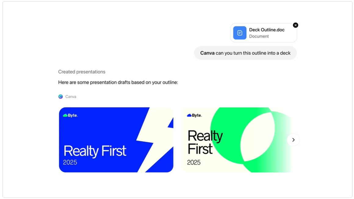 Canva 的新功能則讓設計流程更簡化,用戶可以丟給 ChatGPT 一個檔案,然後透過Canva修改模板。