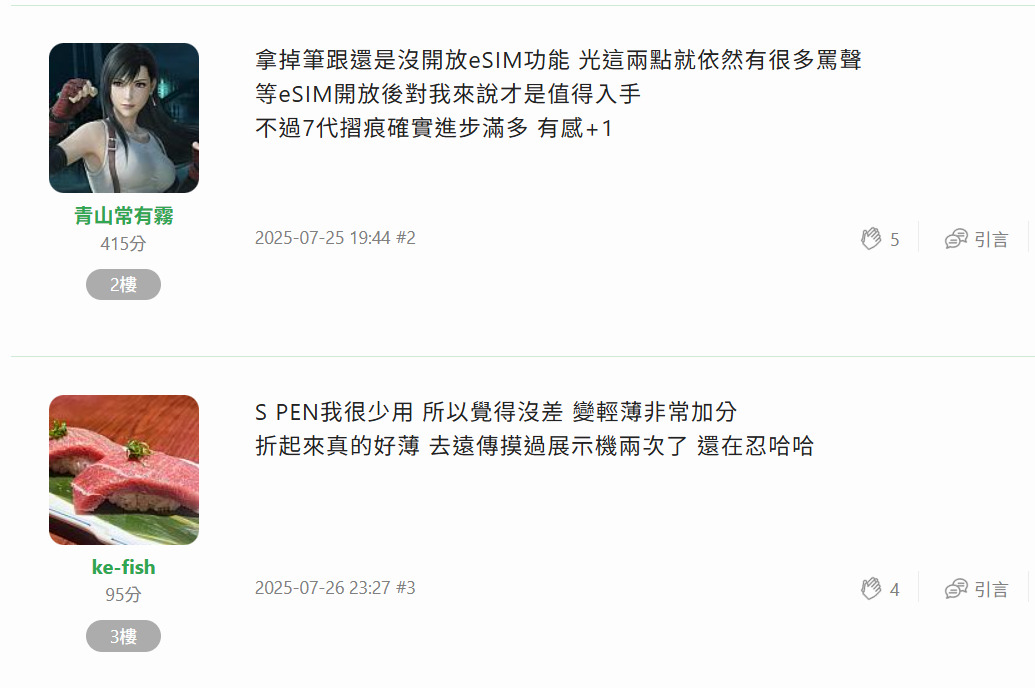 也有其他網友表示「S pen之前根本沒用超過10次」、「拿掉S pen換取手機變薄,我覺得很可以!」......只能說這項改動是否正確,還是要看每個人的使用習慣與情境囉!