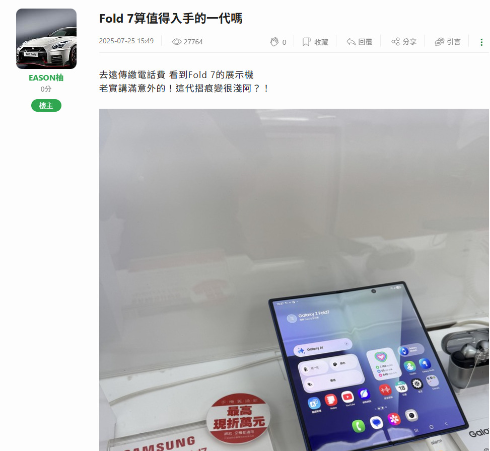 三星 Z Fold7摺疊機有災情/缺點嗎?
