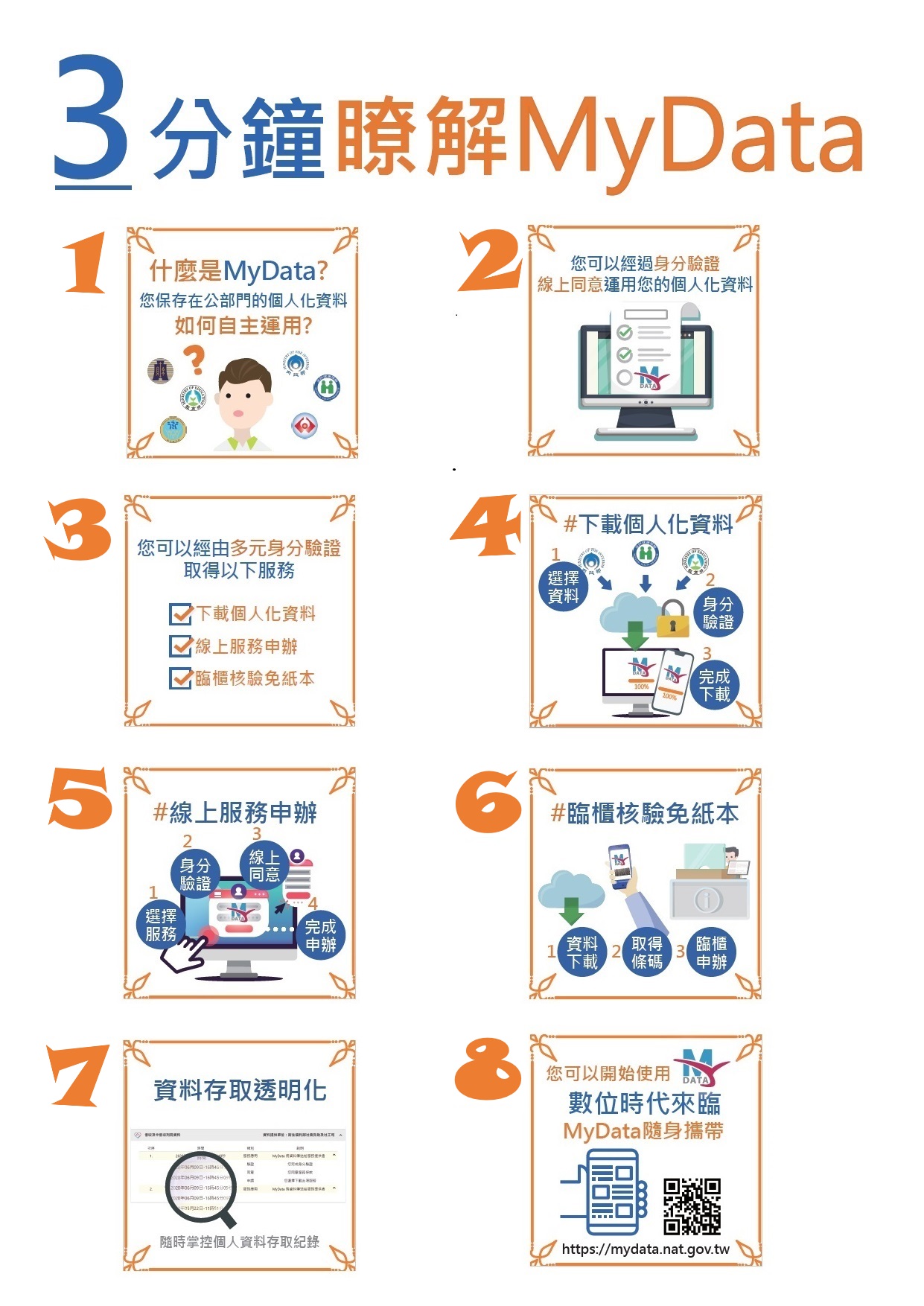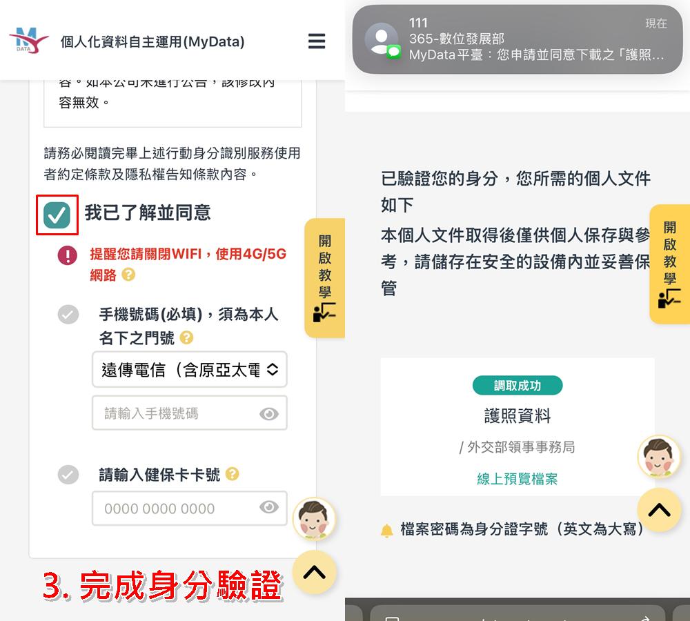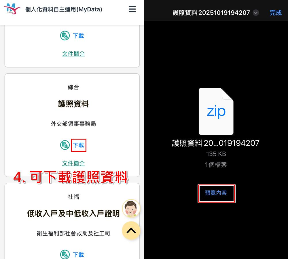 數位發展部配合行政院推動電子化政府服務,本文介紹的「個人化資料自主運用(MyData)」平臺,提供資料下載、線上服務及臨櫃服務作業,民眾可透過平臺驗證身分及線上同意後,介接個人資料自行下載運用,目前可下載個人戶籍、戶政國民身分證影像、地籍及實價、勞保投保、財產、個人所得、車駕籍、護照等31項資料。下方會提供「線上查詢/下載中華民國護照資料」的教學,透過簡單步驟即可完成!