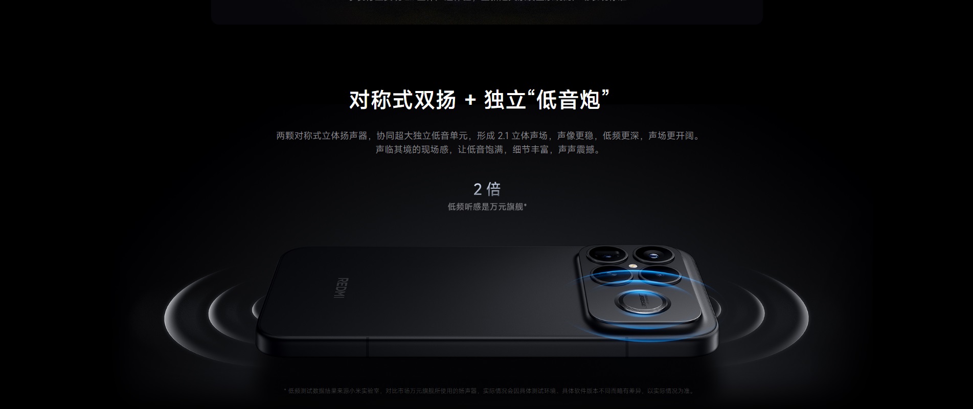 這次最吸睛的賣點之一,是Redmi與音響品牌 Bose 的聯手合作,K90 Pro Max配備2.1聲道立體聲系統,並在機背額外設置一顆獨立低音單體。Redmi宣稱這套配置能帶來「業界領先的低頻表現」。