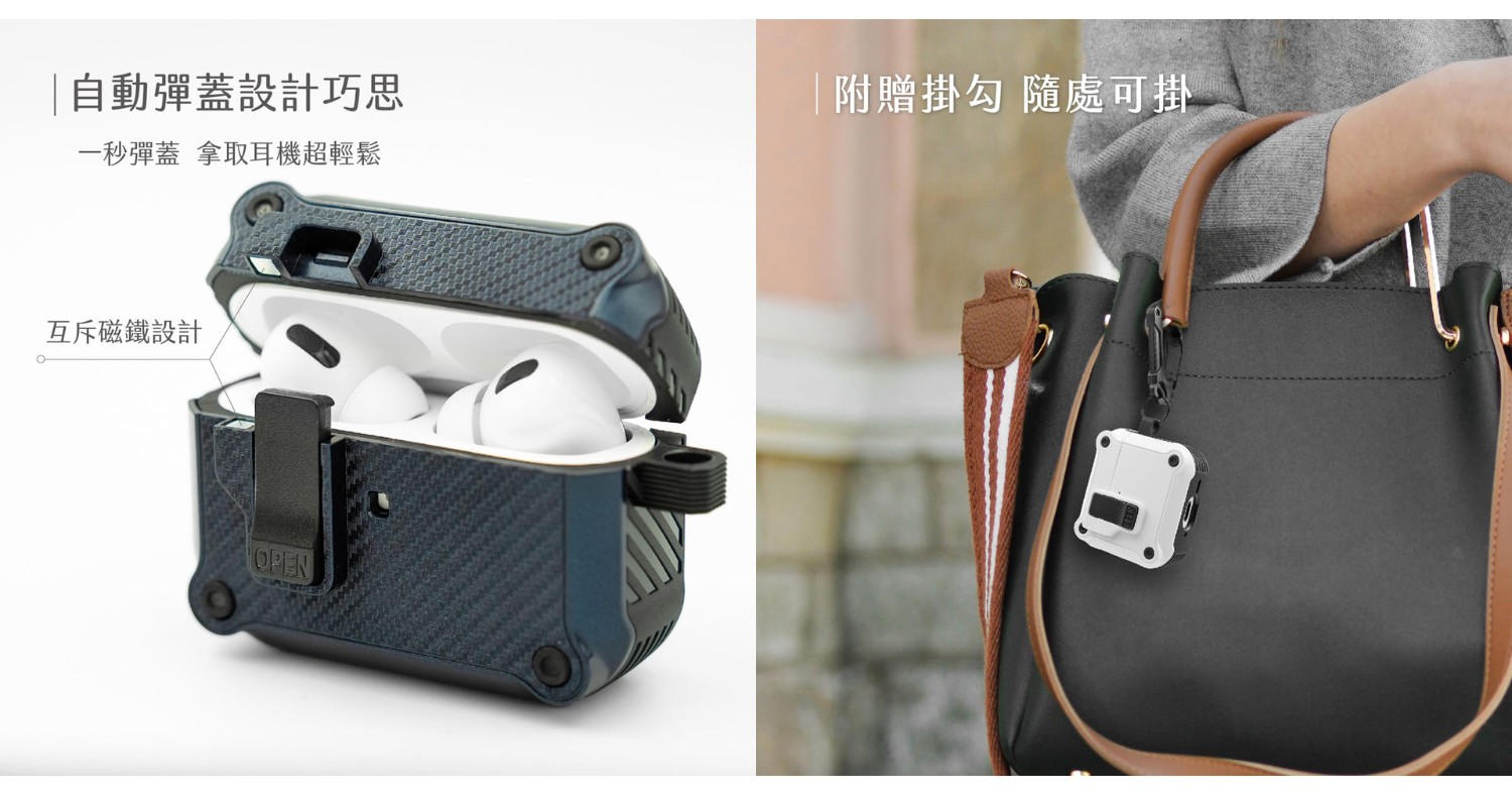 與傳統殼不同的是,它擁有按壓式磁鐵鎖扣,上蓋更難因外力意外彈開,耳機更不容易掉出。同時結合互斥磁鐵設計,按壓解鎖後上蓋會自動彈開,單手操作超順手。