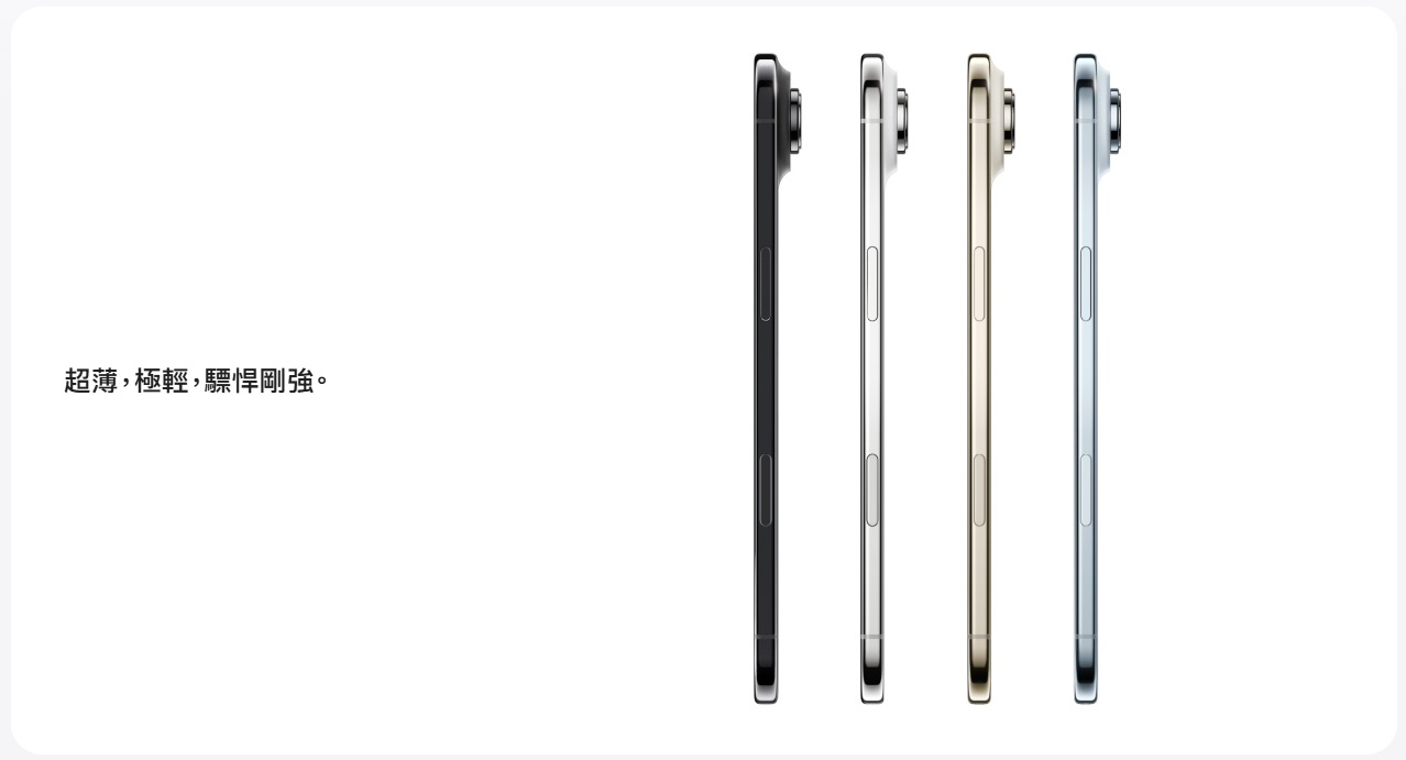 Apple 推出全新一代 iPhone Air,主打「輕、薄、強」三大特點,它不僅是史上最纖薄的 iPhone,還內建 A19 Pro 晶片與全新的 Apple Intelligence 智慧功能,結合前後雙相機革新與極致續航,完美平衡設計與效能。
