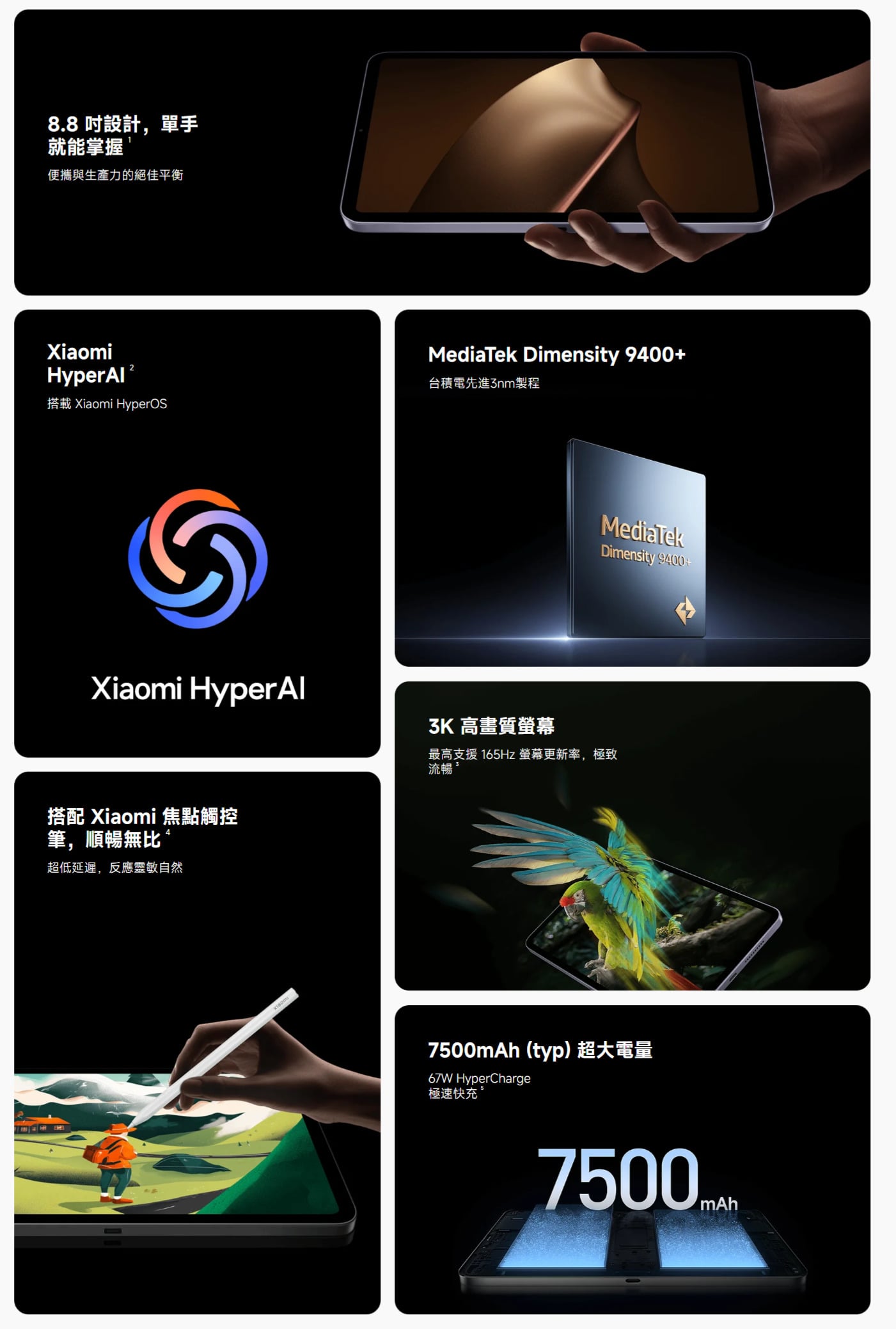 1. 性能強勁小平板讚,現在8.8吋單手拿也不手酸了,之前拿小米平板5真的太重了...
