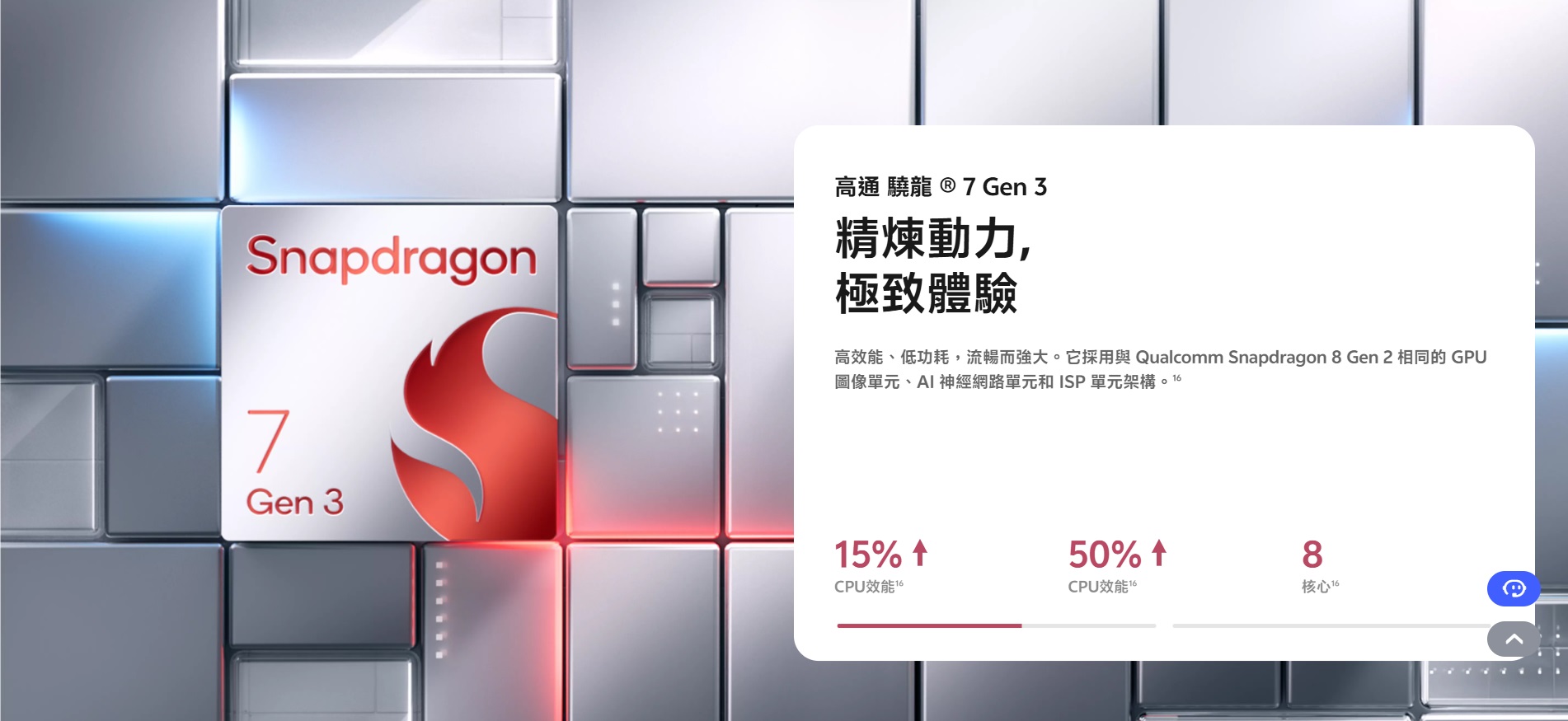 重視性價比:Snapdragon 7 Gen 3 效能充足,續航與閃充表現仍領先同級。