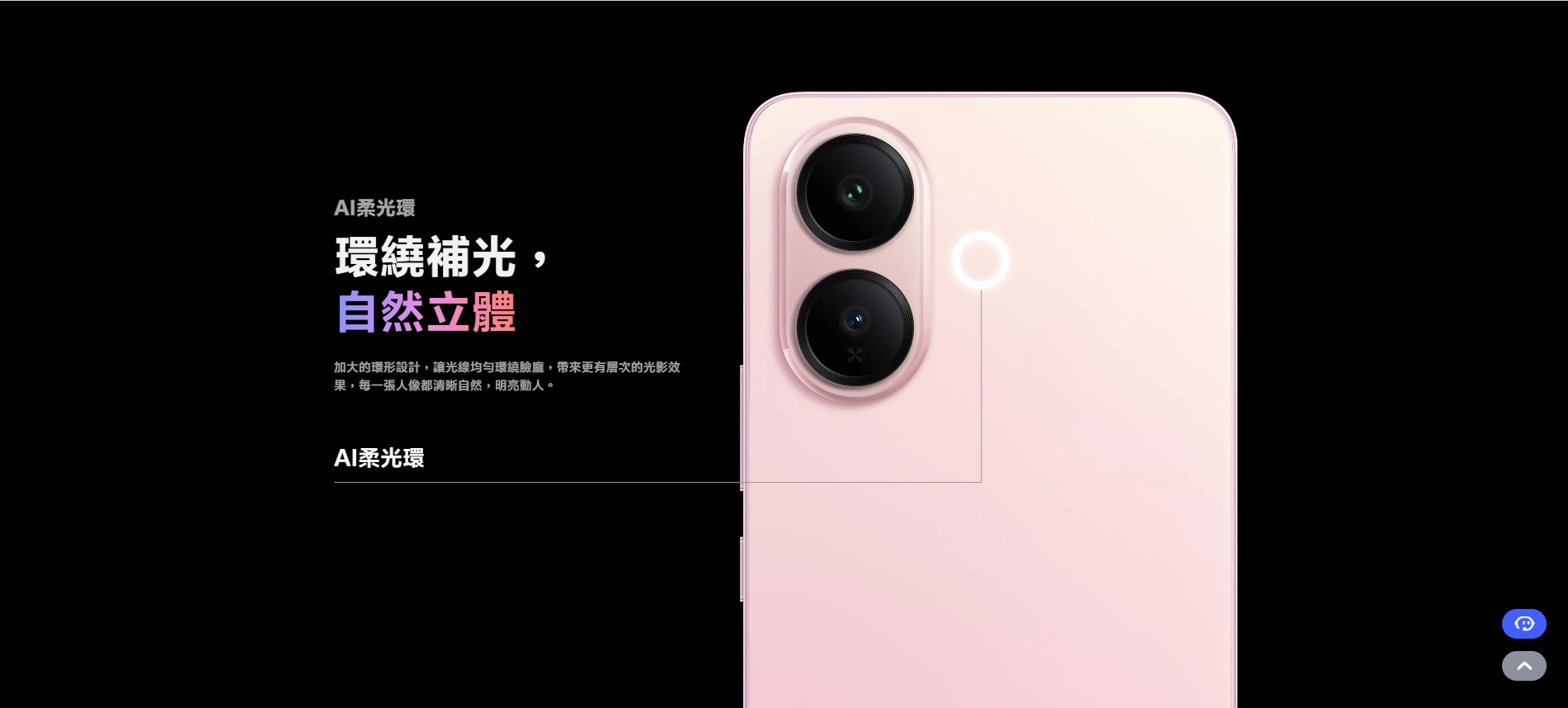 支援 AI 四季人像、AI 柔光人像、AI 反光消除,以及 4K 前後鏡錄影。整體定位偏向「智慧好拍、簡單出片」,適合一般使用者與喜歡自然美肌風格的族群。