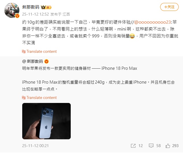 剎那數碼 也暗示,這一改變似乎與 iPhone Air 系列銷量不如預期 有關,蘋果似乎意識到對於手機來說,消費者更在意性能與功能升級,而非極致的輕薄。