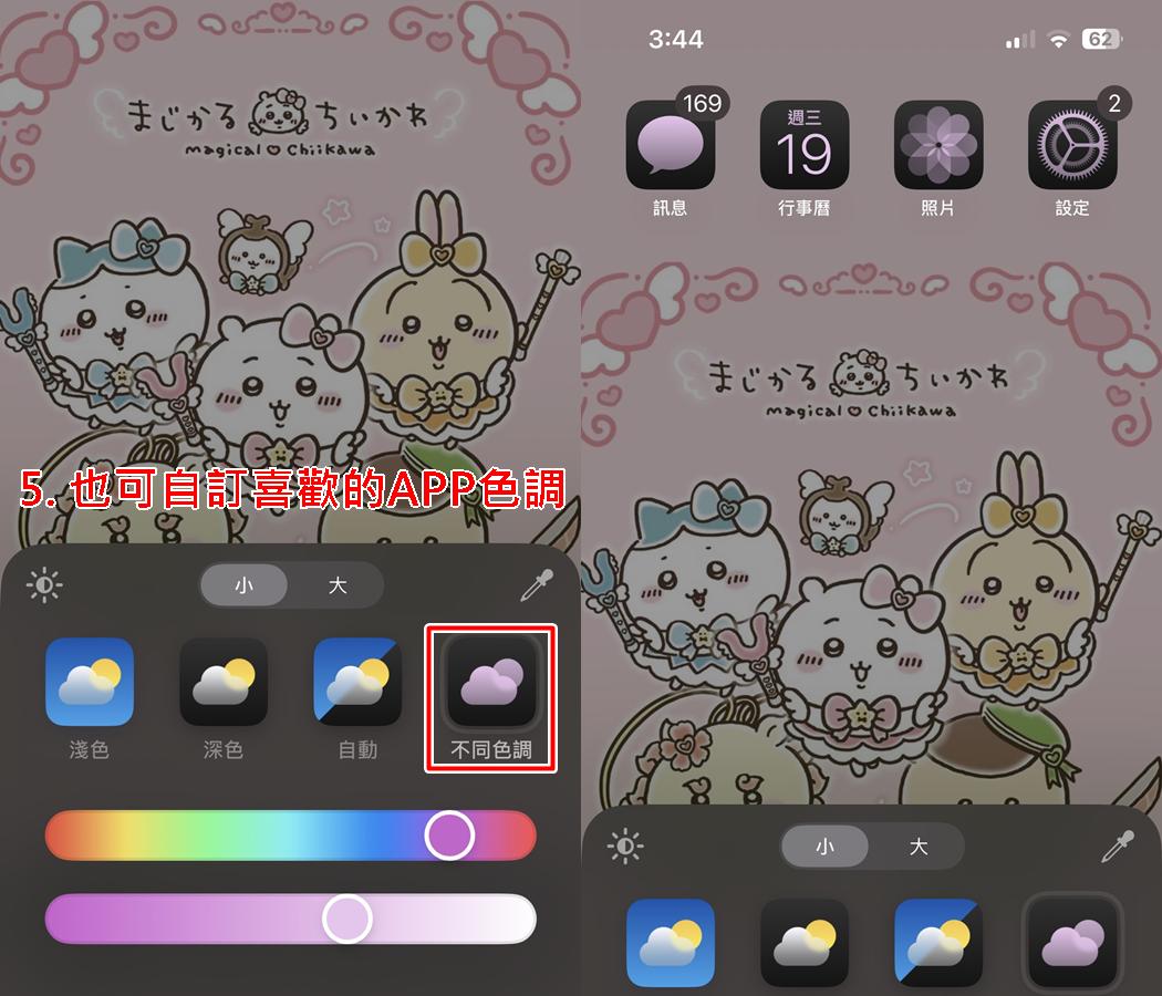 如果你想把App圖示改成「黑色」的,請你按下「深色」;若想調整圖示的大小尺寸,也可直接選擇。