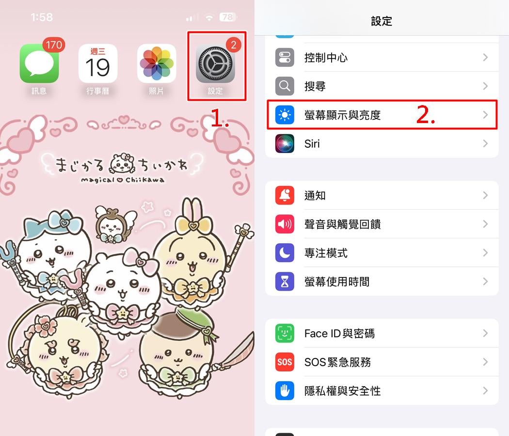 首先開啟iPhone「設定」>「螢幕顯示與亮度」。