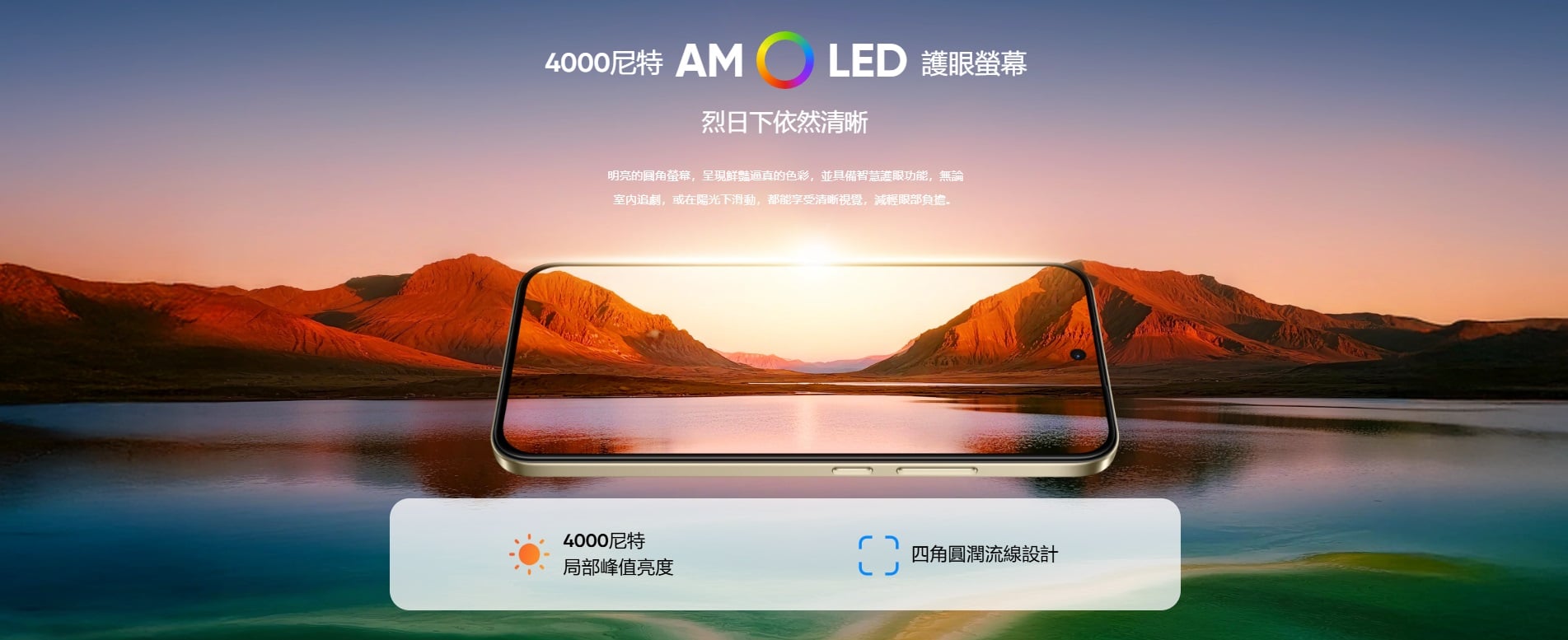 realme 15T 採用 AMOLED 護眼螢幕,具備高達 4000 尼特峰值亮度,即使在大太陽下滑手機也能清楚可見;螢幕支援最高 120Hz 更新率與 2160Hz 高頻 PWM 調光,顏色鮮明、細節細緻,長時間使用也不會造成眼睛負擔。