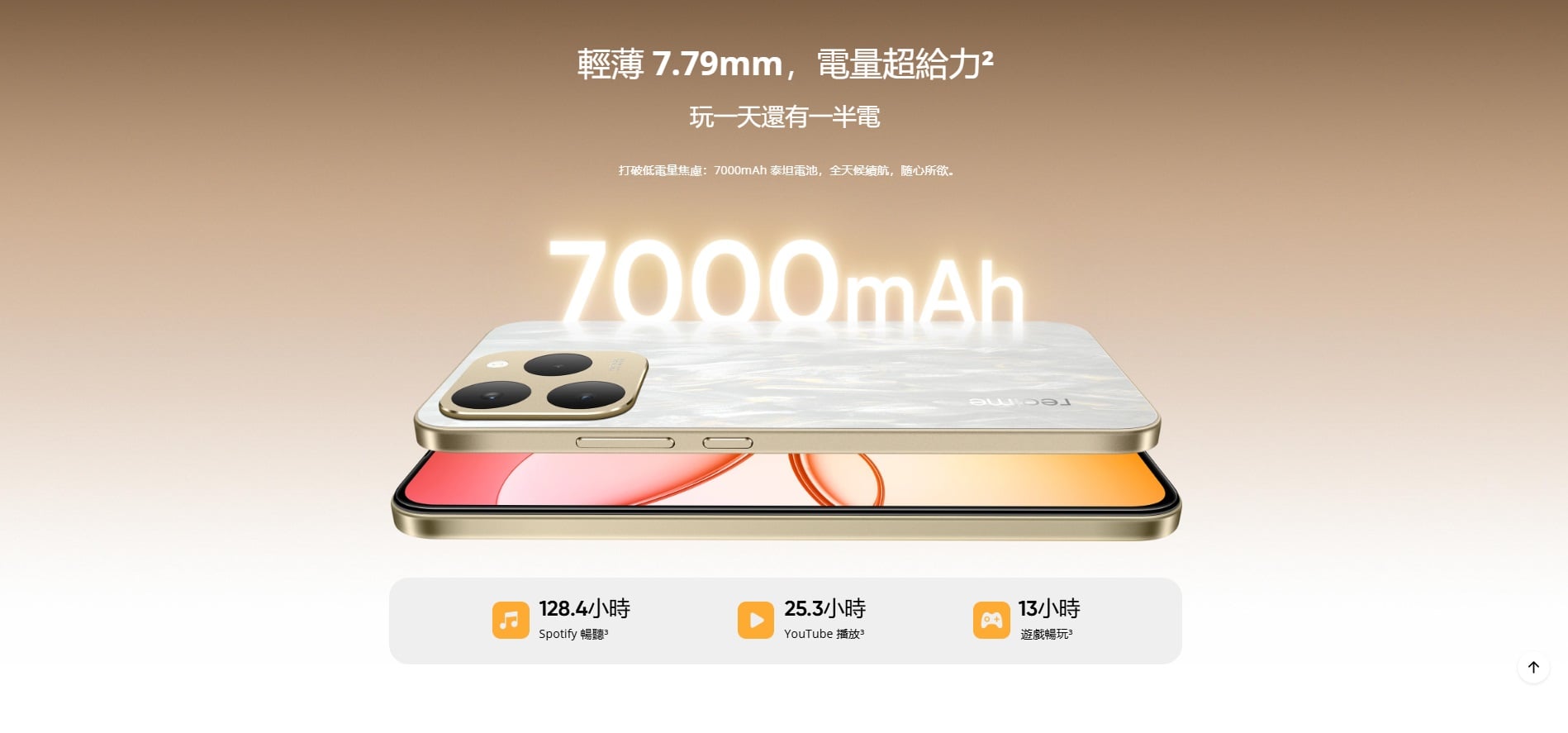 續航力是 realme 15T 的最大賣點之一,搭載 7000mAh 超大電量泰坦電池,可連續使用超過一整天: