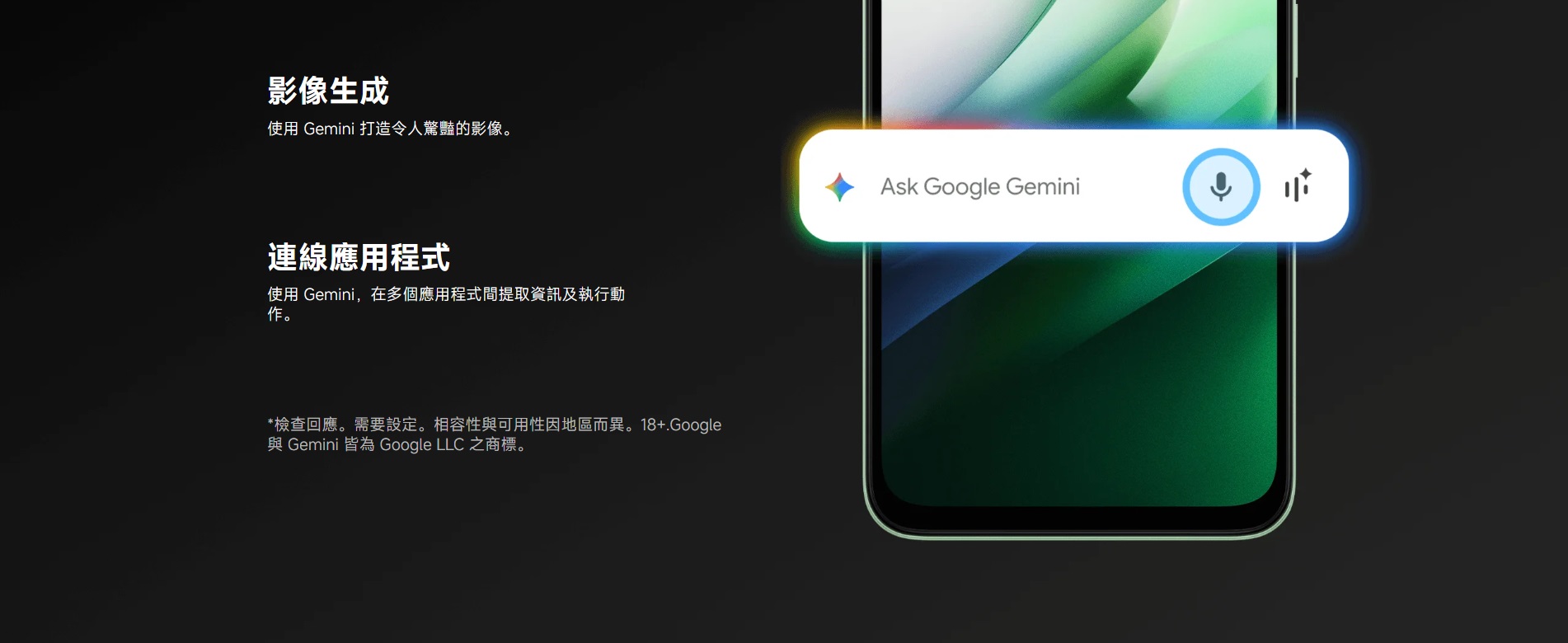 值得一提的是,Redmi 15 5G 也支援 Google Gemini AI 助理,能幫你進行寫作、翻譯、學習與影像生成,甚至可透過「圈選搜尋」功能,在任何畫面上快速查找資訊,讓手機更聰明、更懂你。