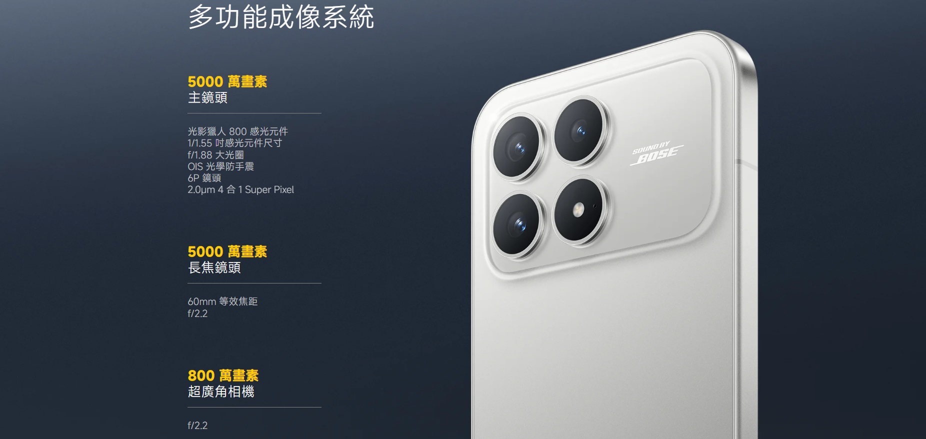 音效部分則與 Bose 深度合作,F8 Pro 採用雙對稱式喇叭,而 F8 Ultra 升級到 2.1 聲道組合(雙揚聲器 + 獨立重低音喇叭),手機外放也能呈現更深沉的低頻與更寬闊的音場。