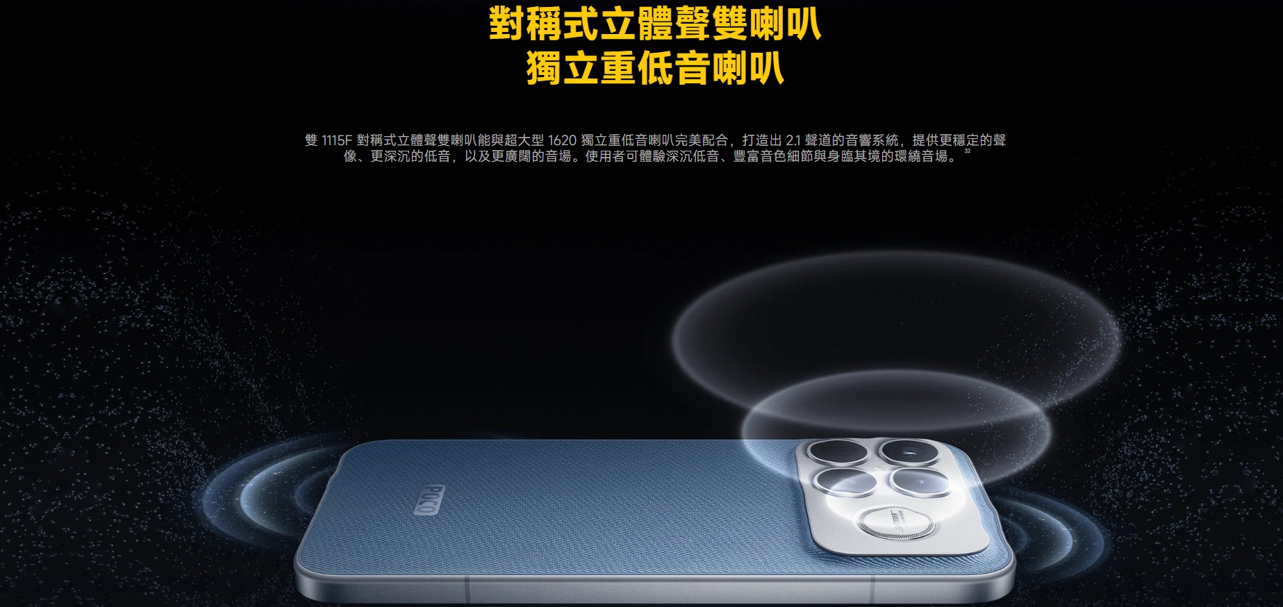 聲音則是 POCO 第一次與 Bose 共同調校音效,搭載 2.1 聲道喇叭(含獨立重低音)。無論看電影、玩遊戲或聽音樂,都能感受到低頻更扎實、人聲更清晰的體驗。