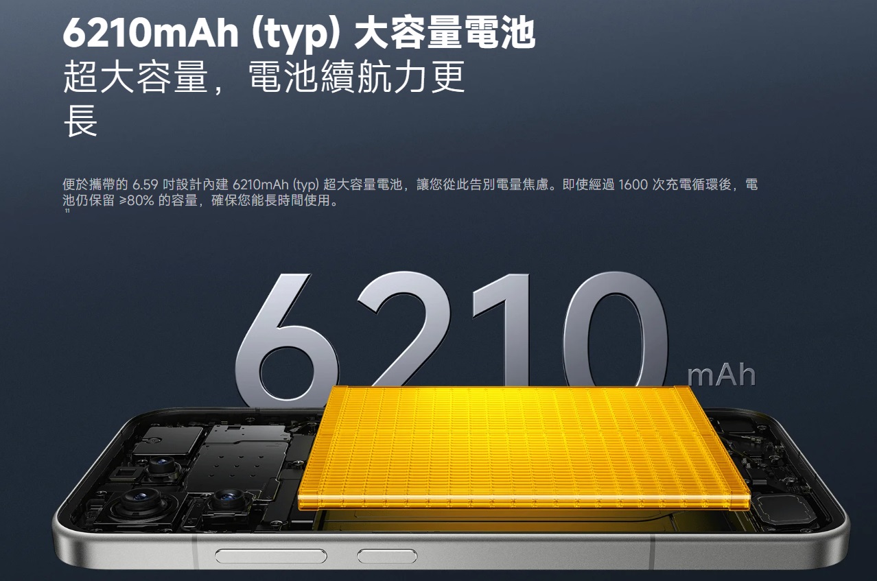 對續航有要求:6210mAh 大電池、100W 快充不斷電。