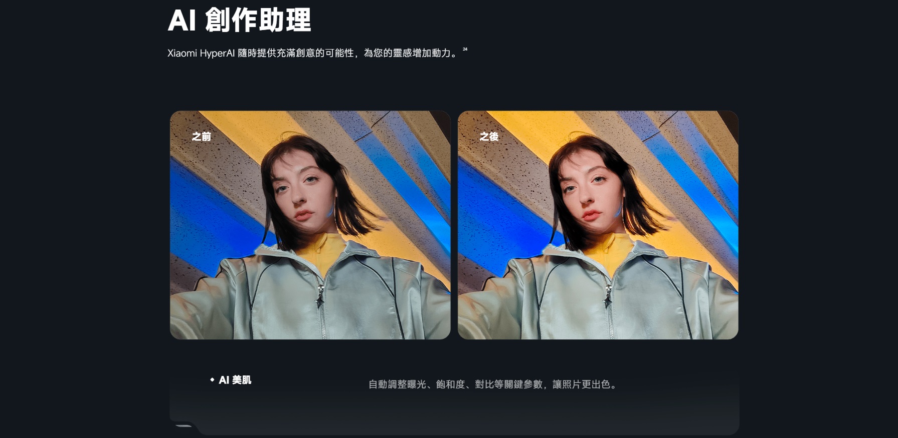 加上 AI 創作助理,支援美肌調光、魔法去背與濾鏡特效,讓使用者輕鬆拍出專業感照片與影片。