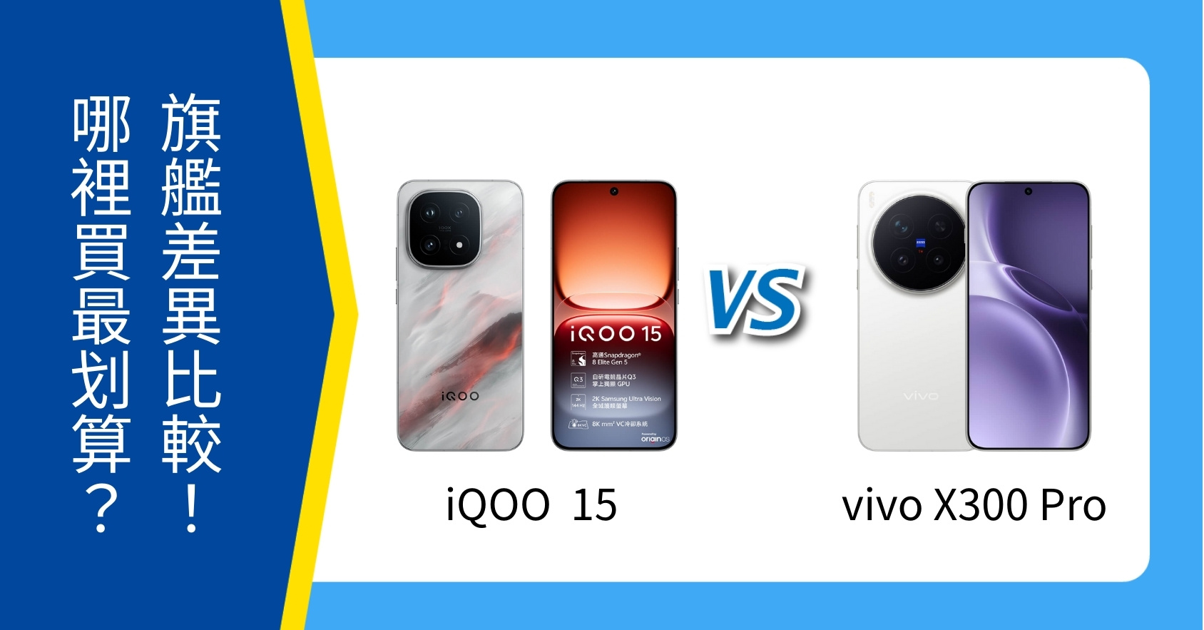 【機型比較】iQOO 15 vs vivo X300 Pro 怎麼選?空機價、規格、顏色全面比較!