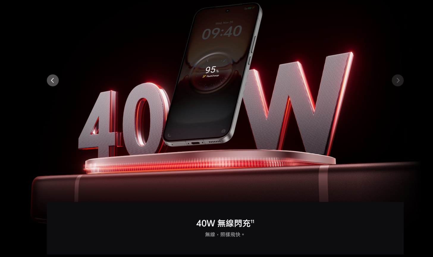支援 100W 有線閃充 + 40W 無線閃充,搭配智慧溫控與旁路充電機制,長時間遊戲也不會發燙。