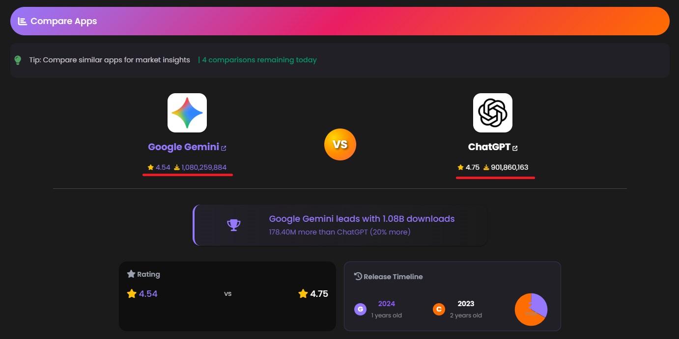 【快訊】Gemini 火速逼近 ChatGPT!下載次數突破10億次?!