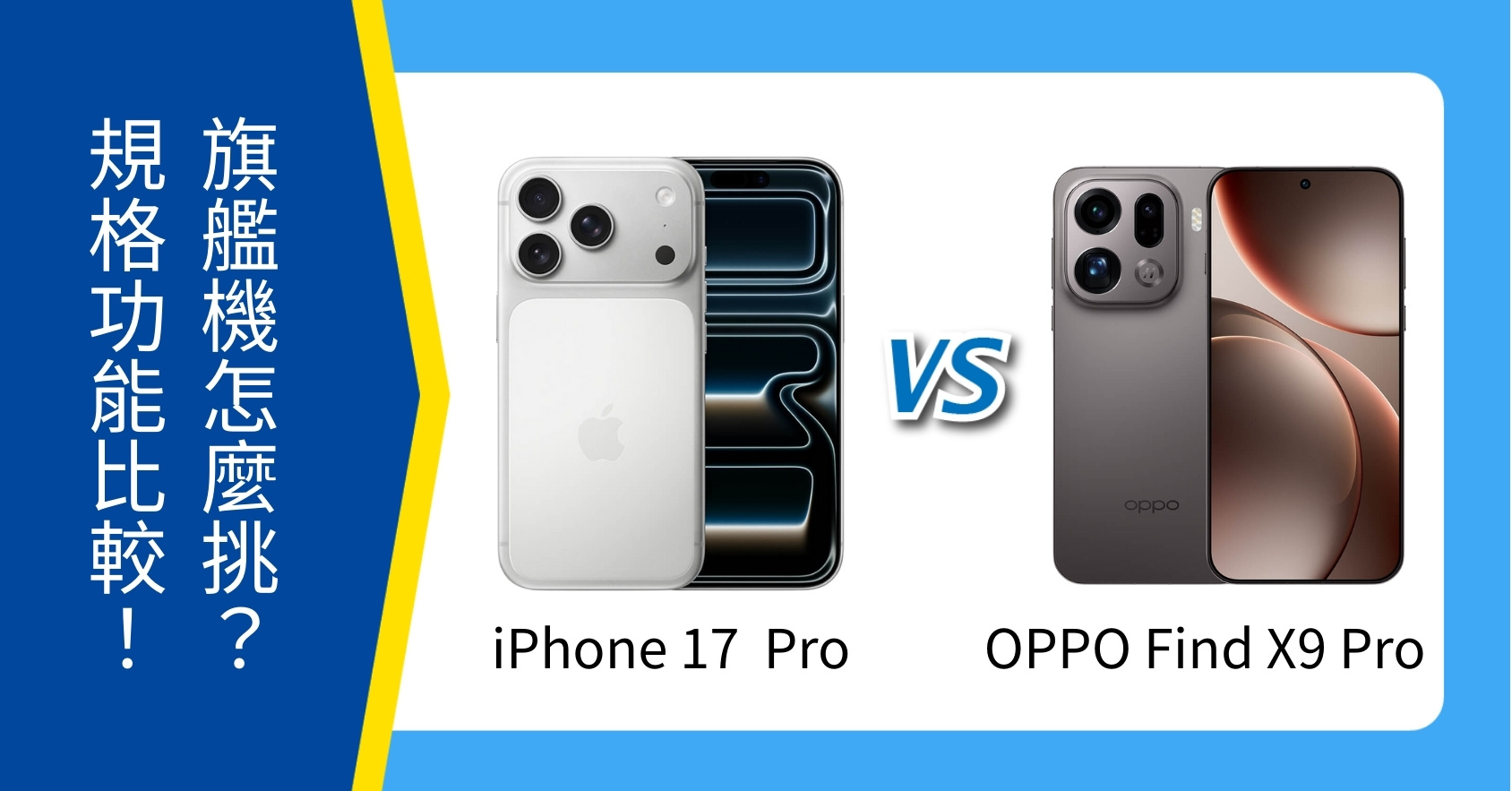 前者是主打全新鍛造鋁金屬一體機身與 A19 Pro 晶片的 iPhone 17 Pro;另一個則是影像系統超強、搭載 2 億畫素長焦與 7500mAh 巨量電池的 OPPO Find X9 Pro 。