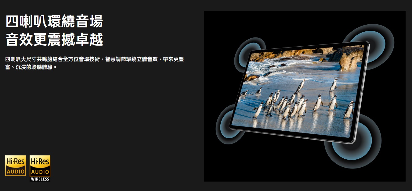 在娛樂體驗上,四喇叭環繞音效讓追劇、看片時更有臨場感,不需要額外接喇叭也能有不錯的音場表現。