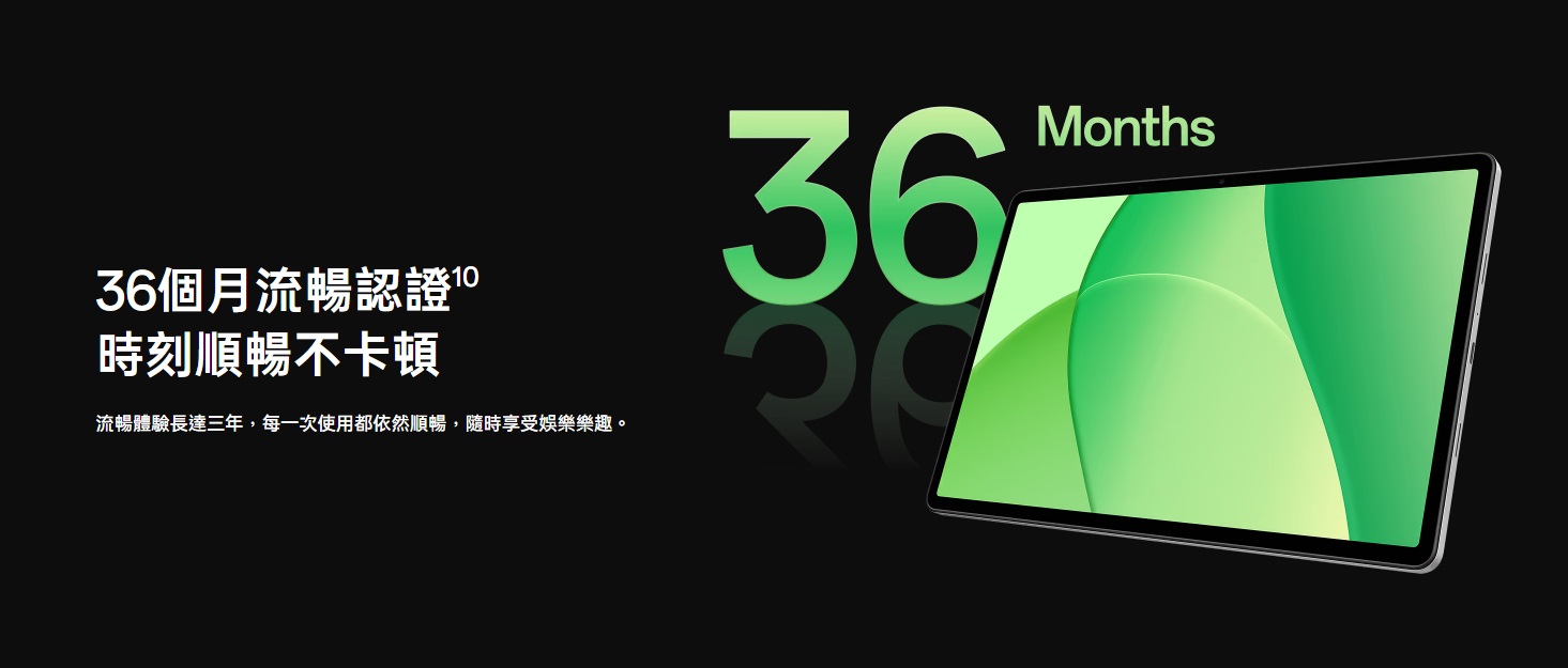 OPPO Pad SE 通過 36 個月流暢認證,代表在正常使用情況下,三年內的操作流暢度都有一定水準。