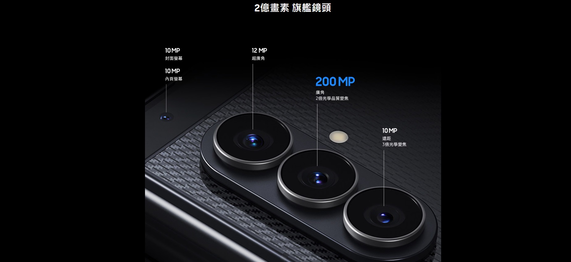 Z TriFold 主鏡頭直接給到 2 億畫素、12MP廣角、10MP遠距,主打高解析、裁切彈性與後續 AI 修圖能力。