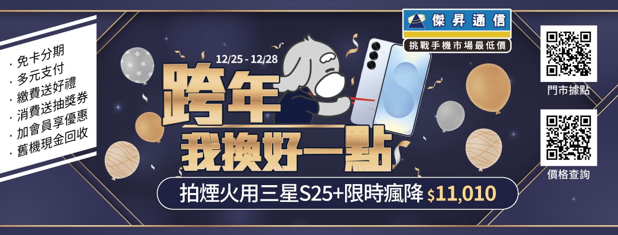不少消費者都趁這幾天升級手機與配件,為了讓大家不留遺憾,深受星粉喜愛的三星Galaxy S25+(12GB/256GB),原廠售價34,900元,傑昇通信聖誕活動期間限時68折,直接現賺11,010元,優惠價格23,890元;想要體驗旗艦性能、價格親民的三星Galaxy S25 FE(8GB/256GB),空機現省5,910元,只要16,990元。活動期間購入還能額外獲得價值3,900元的原廠好禮,包含六個月Google AI Pro擴充功能與2TB雲端儲存空間,讓新機在拍攝跨年夜景時擁有最強大的AI後製戰力。