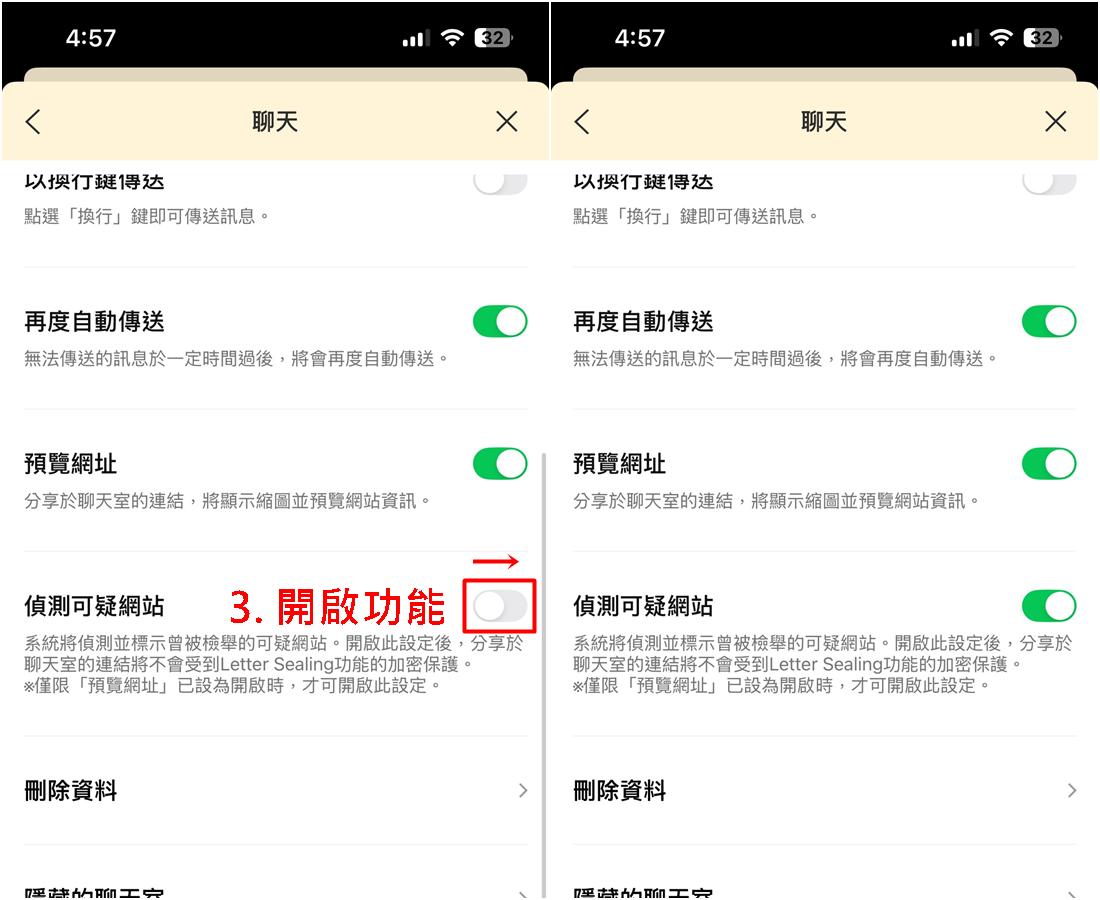 LINE如何開啟「偵測可疑網站」功能?