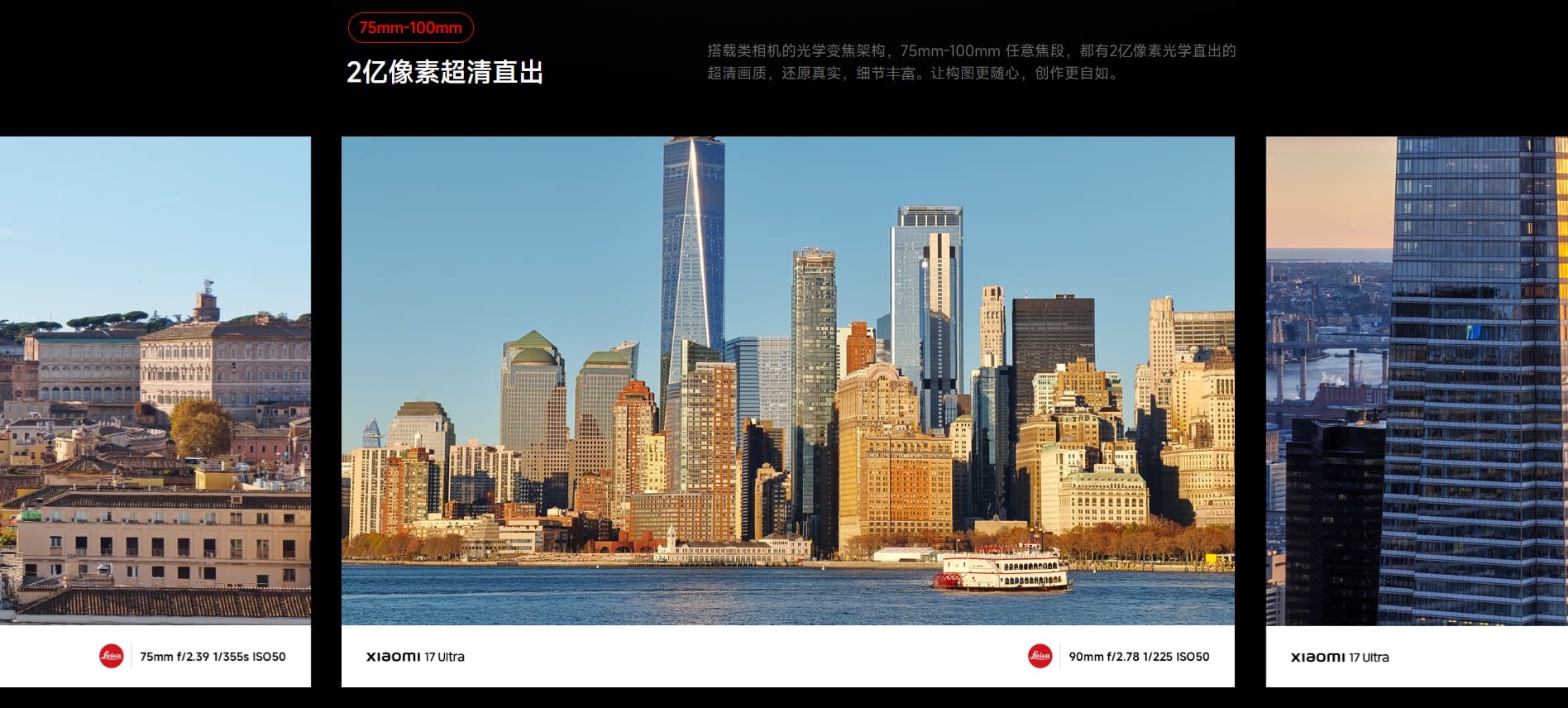 如果說主鏡頭是基本盤,那這顆 200MP 徠卡潛望式鏡頭就是 小米i 17 Ultra 的殺手鐧,它支援 75mm 到 100mm 的連續光學變焦,而且是全解析度輸出,不靠數位裁切硬撐。
