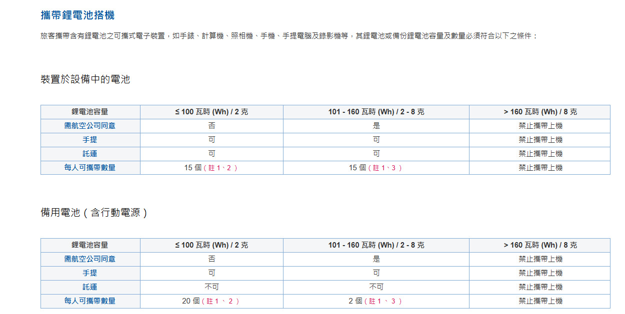 因為根據 國際航空運輸協會(IATA)的規定,是以行動電源的總能量(Wh)來決定攜帶限制,而「不是以標示方式為標準」。所以民眾只要單位換算後,確認自己攜帶的行動電源容量,有符合航空公司的規範,就可以安心攜帶出國,不用怕會被丟掉喔!