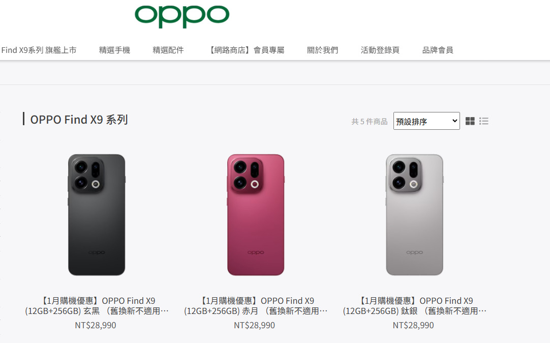 | OPPO Find X9 | NT$28,990 | NT$19,990 | ||