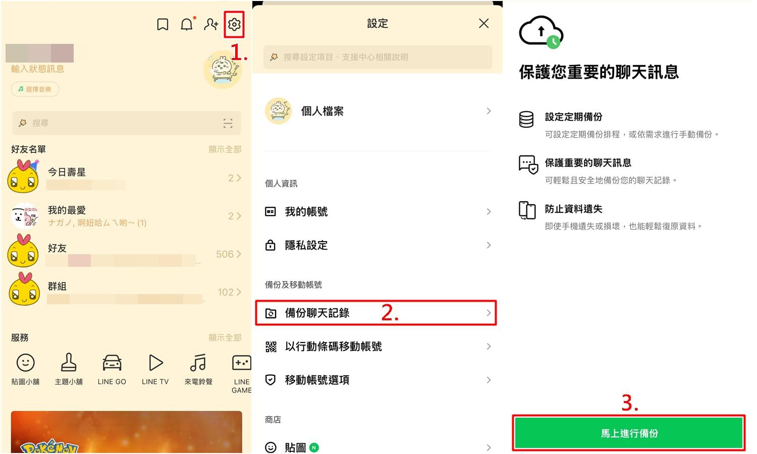LINE「設定」>「備份聊天記錄」
