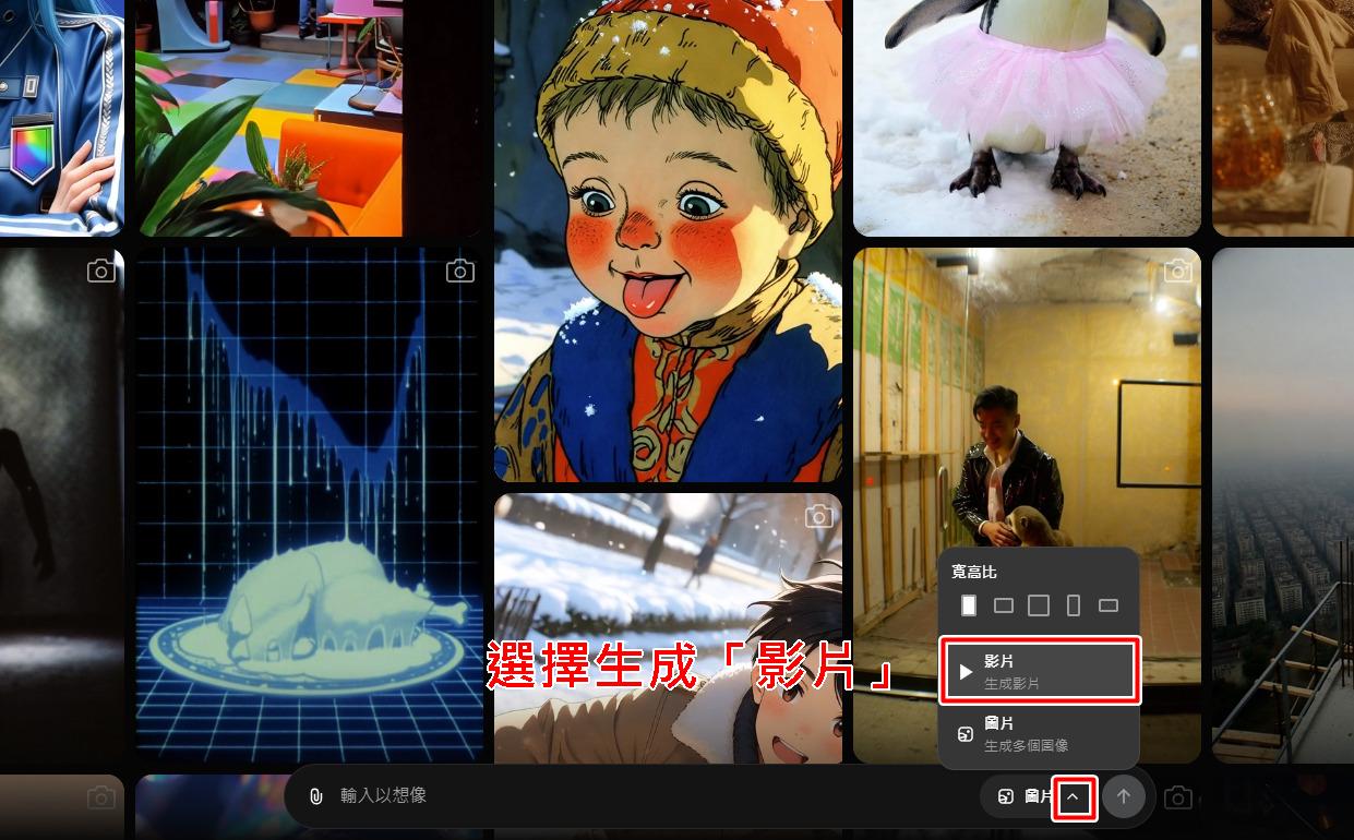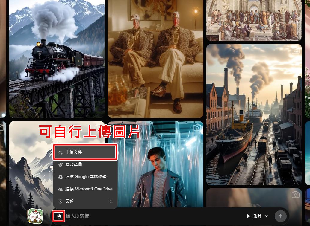 而如果你想使用現成的圖片,也可以「上傳圖片」,讓 AI 利用靜態圖像轉動態影片。
