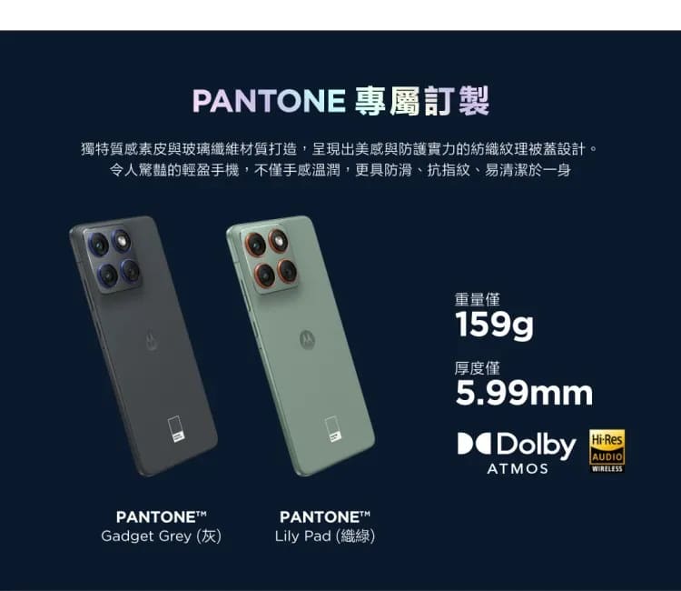 edge 70 最大特色就是「薄到很有感」,機身厚度僅 5.99mm,重量約 159g,拿在手上幾乎沒有負擔。搭配航太級鋁合金邊框與霧面質感背蓋,視覺與手感都走高級路線。