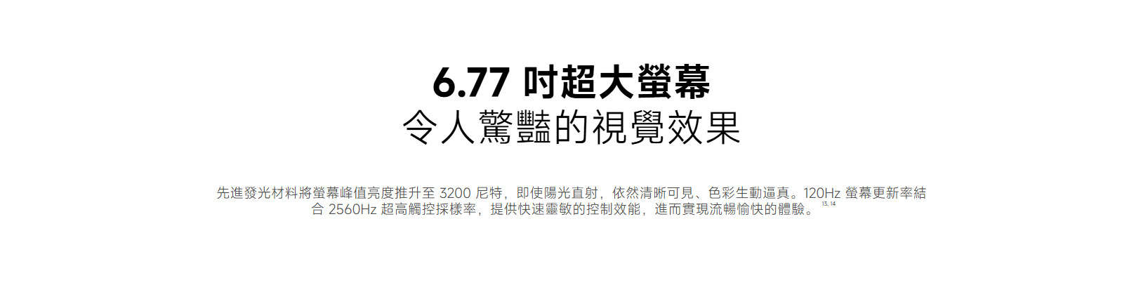 螢幕為 6.77 吋 FHD+ AMOLED,支援 120Hz 更新率,亮度最高可達 3200 nits,即使在戶外陽光下也能清楚顯示內容。顏色方面提供「煙霞紫、玄夜黑、冰川藍」三色,風格偏年輕耐看,適合日常通勤與生活使用。