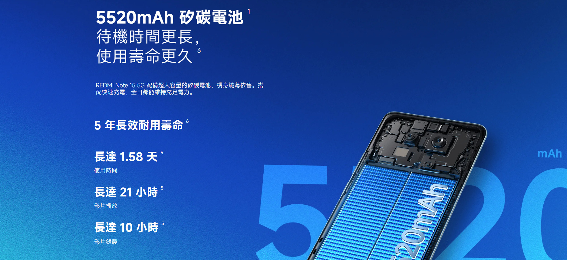 內建 5520mAh 矽碳電池,在維持輕薄機身的同時,依然能提供接近 1.5 天的實際使用時間;影片播放可達約 21 小時,日常上班、通勤、追劇基本不用擔心電量焦慮。