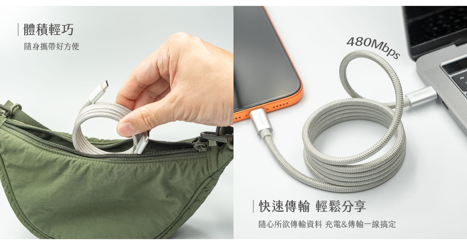 除了充電,也支援最高 480Mbps 資料傳輸速度。不論是檔案同步、照片或文件傳輸,都能穩定完成,日常使用完全夠用。