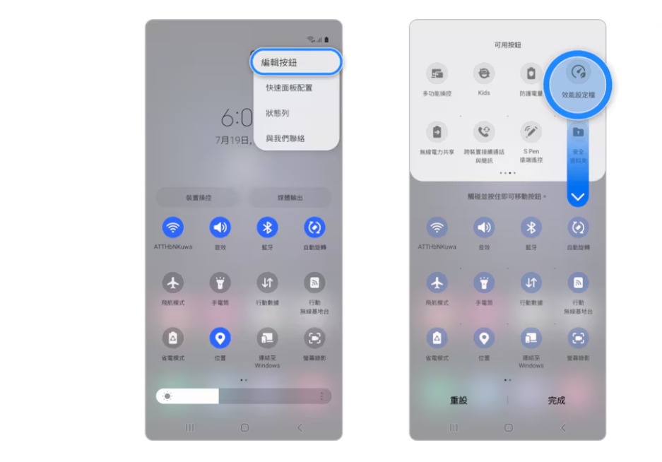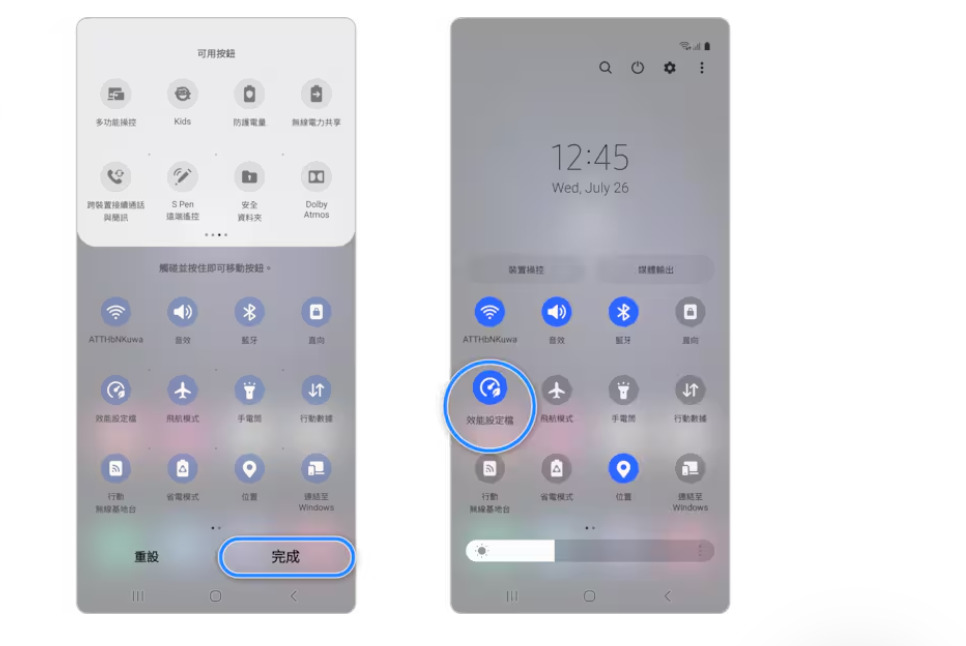 完成以上的設定,之後你只要下拉「快速設定面板」>點一下「效能設定檔」,就能快速切換「輕度效能」或「一般模式」囉!