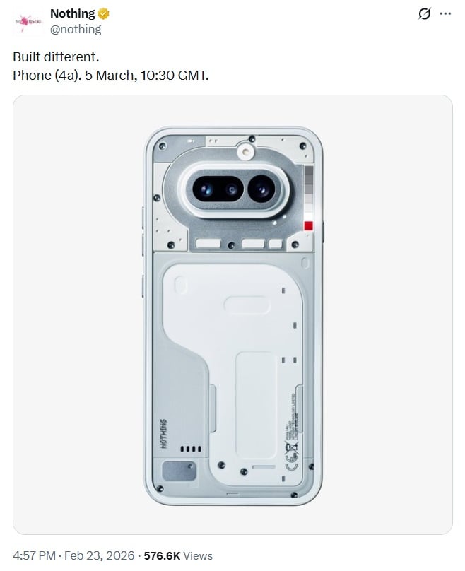 英國品牌 Nothing 在 3 月 5 日倫敦發表會前,率先公開了新一代中階機款 Nothing Phone 4a 的官方圖片。