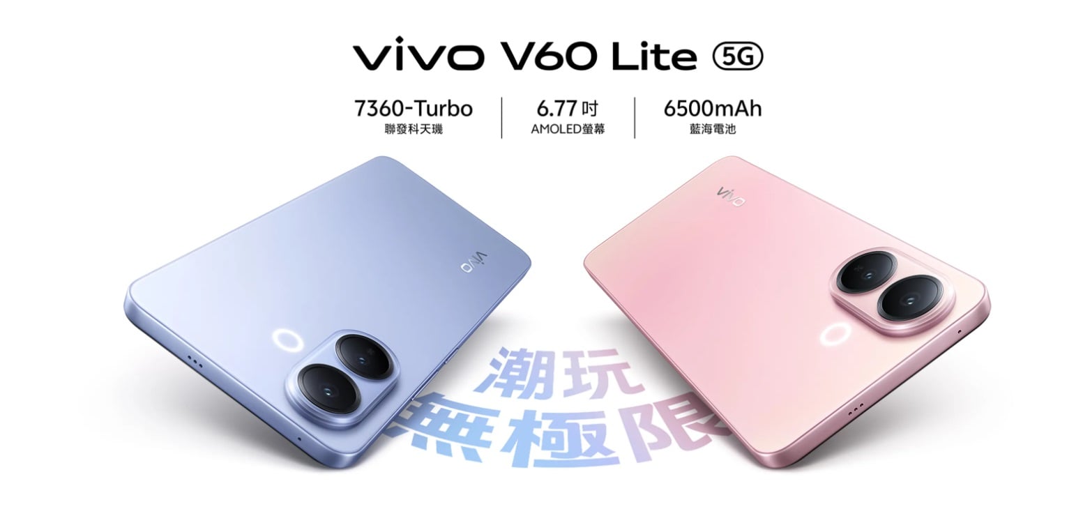 vivo V60 Lite 提供「8G/256G」、「12G/256G」兩種配置,建議售價為 NT$13,990、NT$14,990。