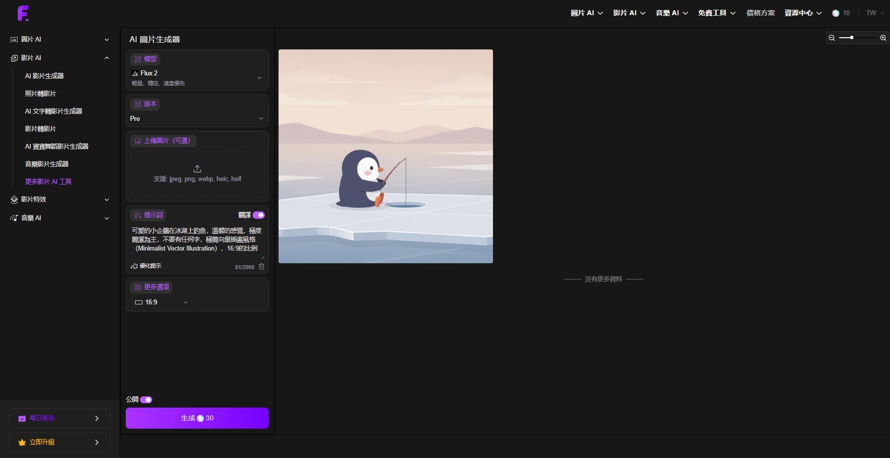 付費版: 有每月約 10-60 美元的方案,解鎖更高解析度與更快的生成速度。