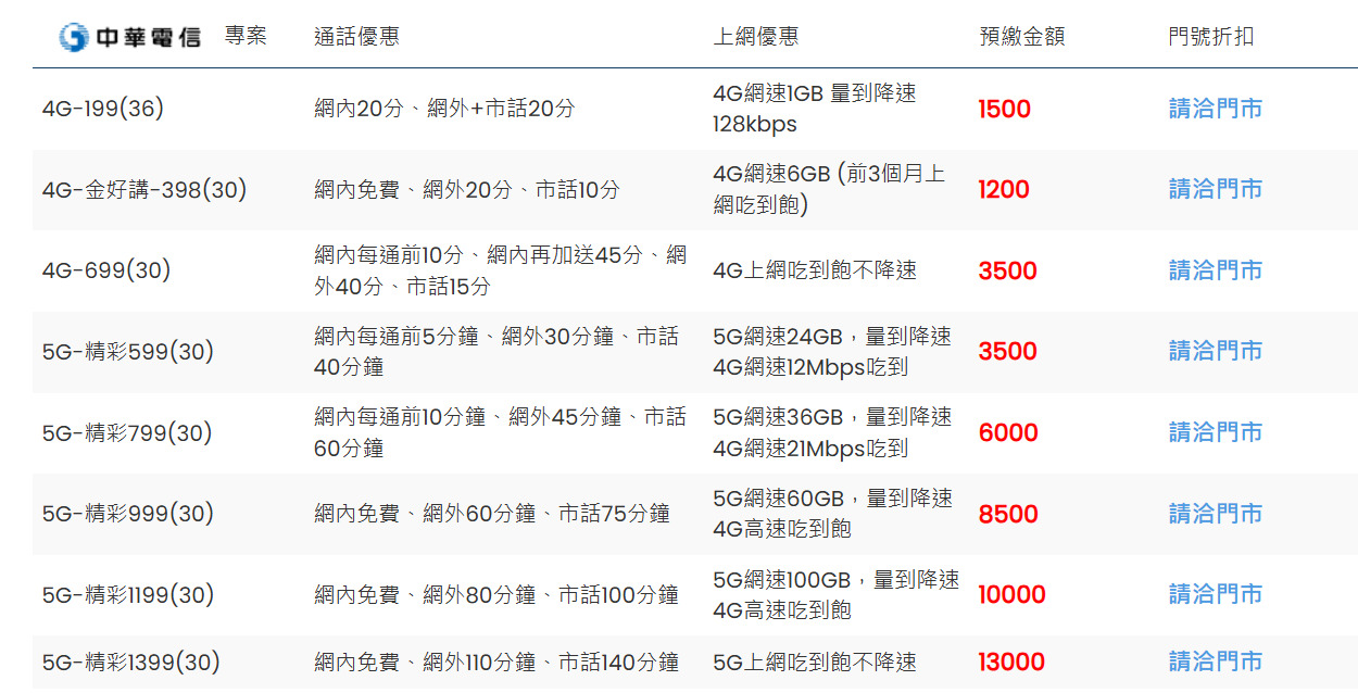 Q:辦理優惠方案需預繳嗎? | A:目前僅中華電信的優惠方案都需預繳 |